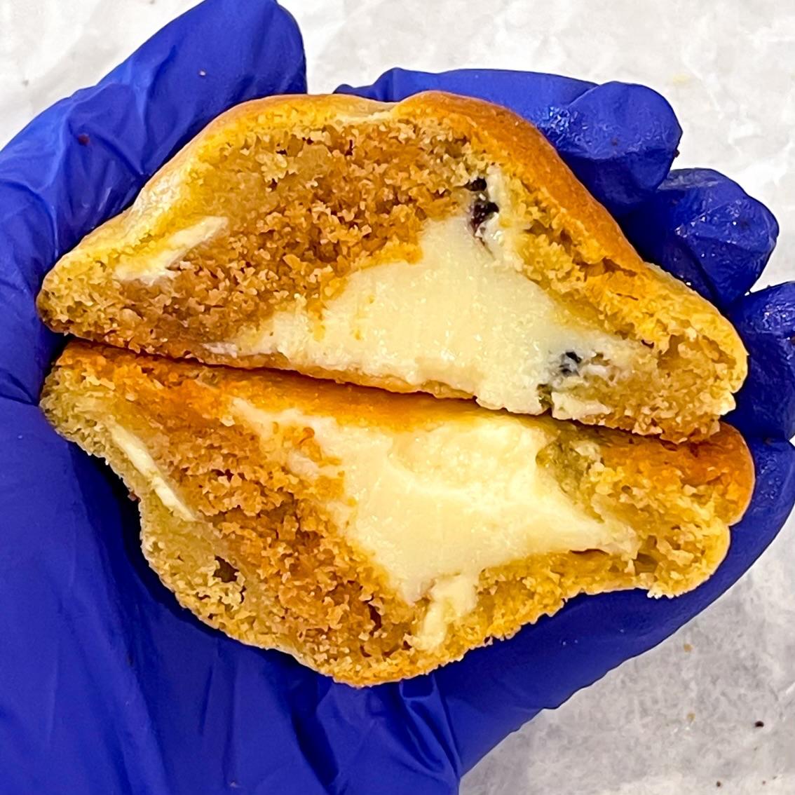 Delicious vanilla cookie with white chocolate chips, dried blueberries, lemon zest and stuffed with delicious lemon cream and a hint of graham cracker crust.